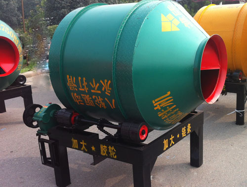 小滾筒式混凝土攪拌機(jī)_混凝土攪拌機(jī)屬于自落式雙錐反轉(zhuǎn)出料移動式混凝土攪拌機(jī),可攪拌塑性和半干硬性混凝土。攪拌筒正轉(zhuǎn)攪拌,反轉(zhuǎn)出料,每罐可攪拌350升混凝土(指搗實(shí)后混凝土體積),每小時可生產(chǎn)10~14立方米。適用于一般建筑工地、道路、橋梁工程和中小型混凝土構(gòu)件廠。小滾筒混凝土攪拌機(jī)固定攪拌時,可挖地坑,使料斗口與地面平齊,進(jìn)料方便,大大減輕勞動強(qiáng)度。(這種小型滾筒混凝土攪拌機(jī)多為沒有自動上料系統(tǒng))。